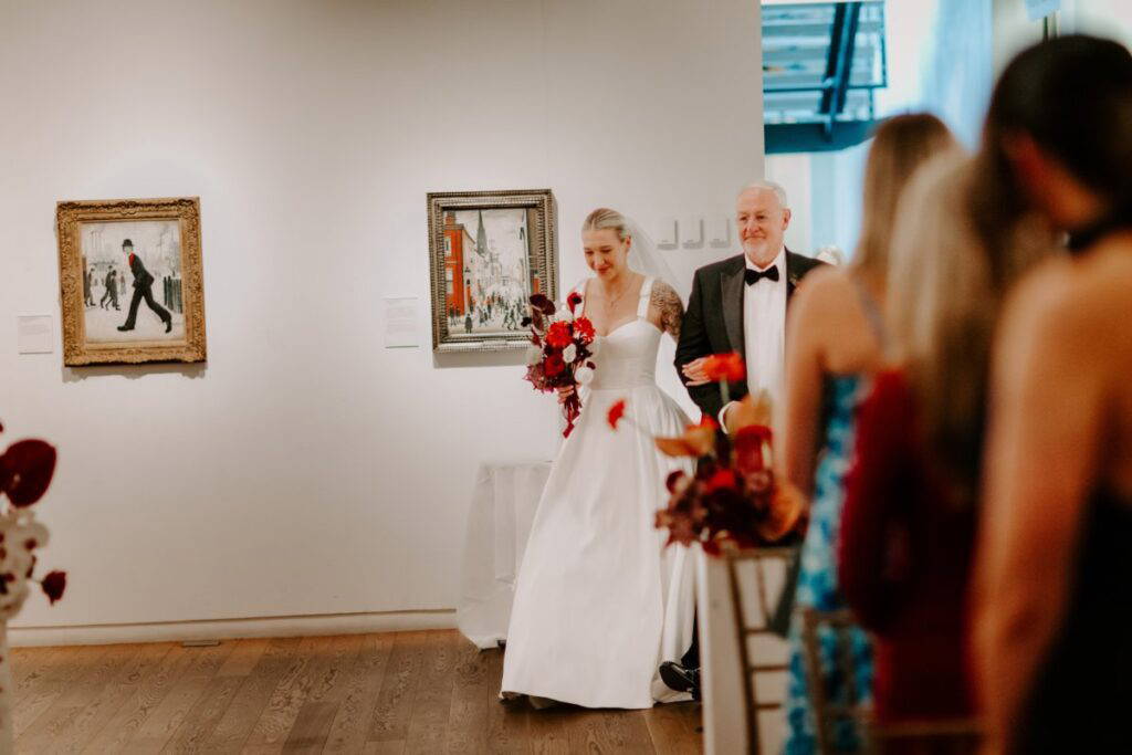 Later guest were moved to gallery 11 where they were met with reception drinks and the couple had a chance to take in the gallery’s surrounding whilst their first photos as a newly married couple.